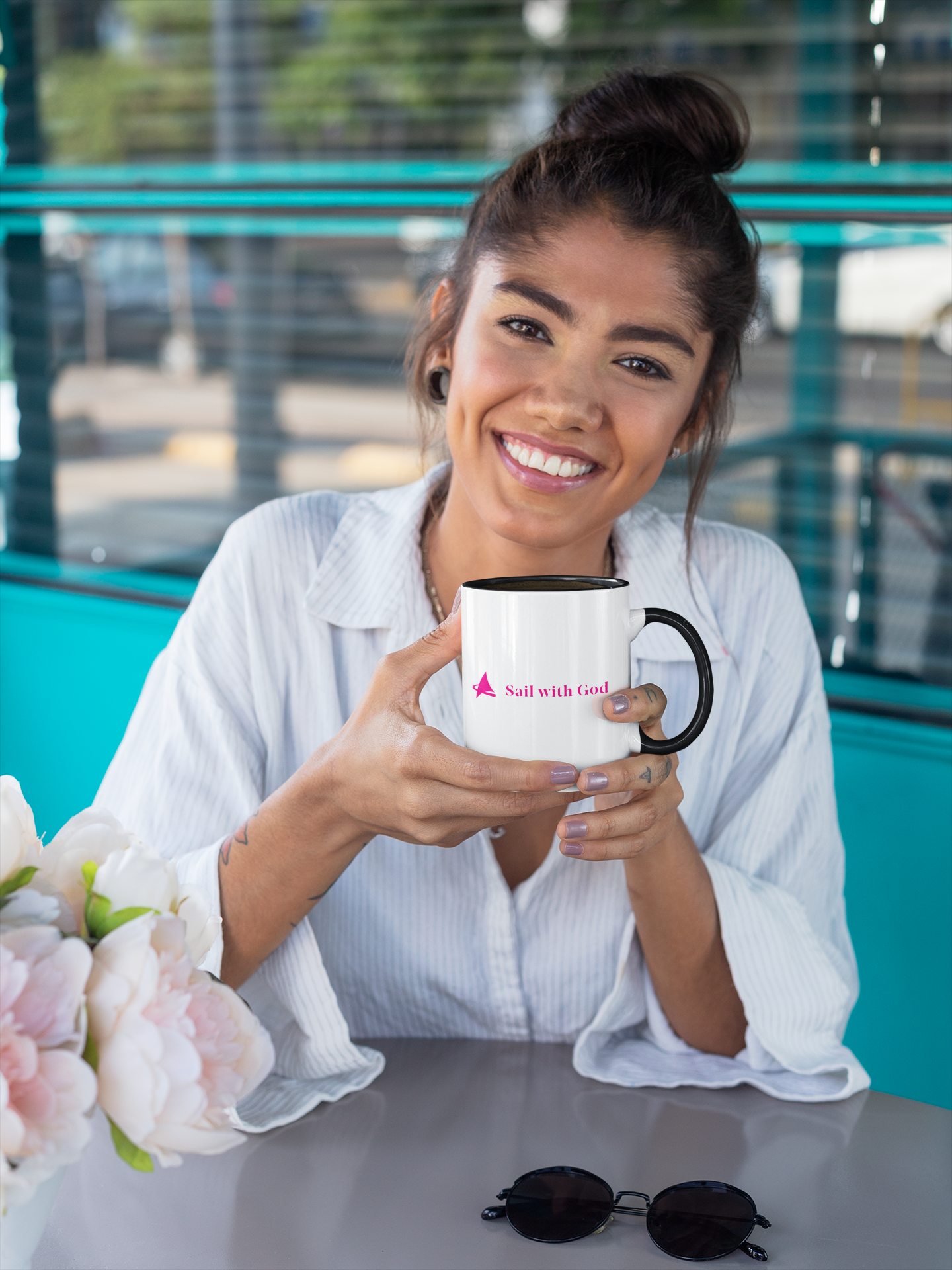 "Sail with God" Contrast Mug (Pink)