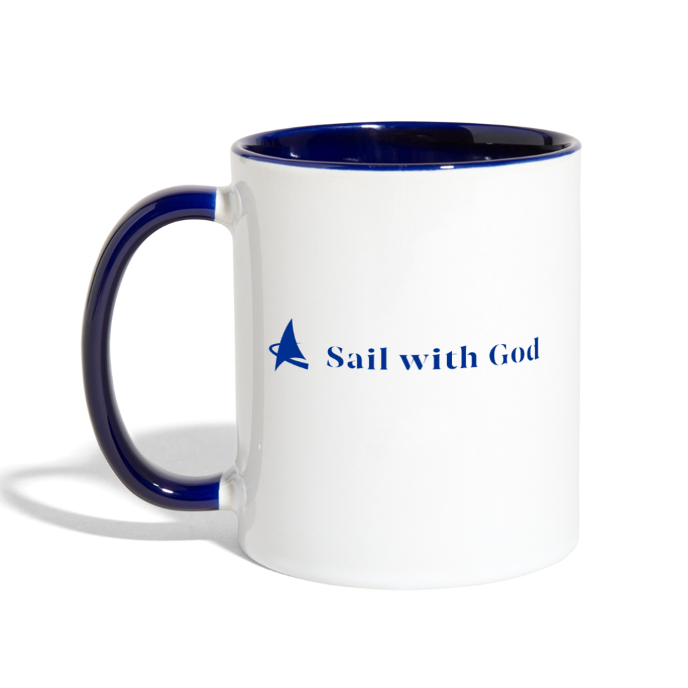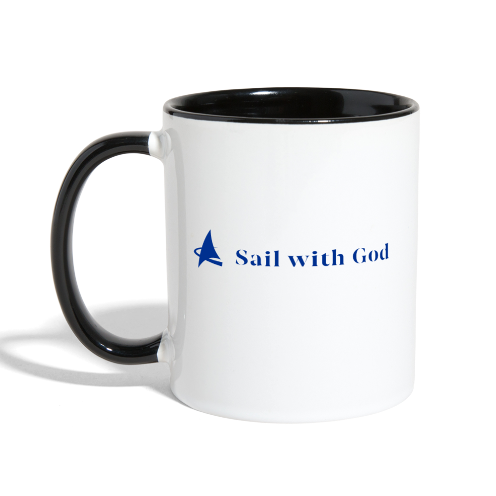 A bright start for your day: Indulge yourself with a hot drink from our contrasting ceramic mug from the "Sail with God" collection.