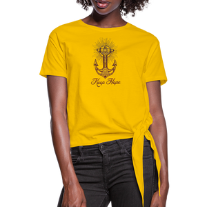 Here comes your perfect companion for jeans, skirts and shorts. Its loose fit is flattering for any figure, while the knot on the left adds an asymmetrical touch.