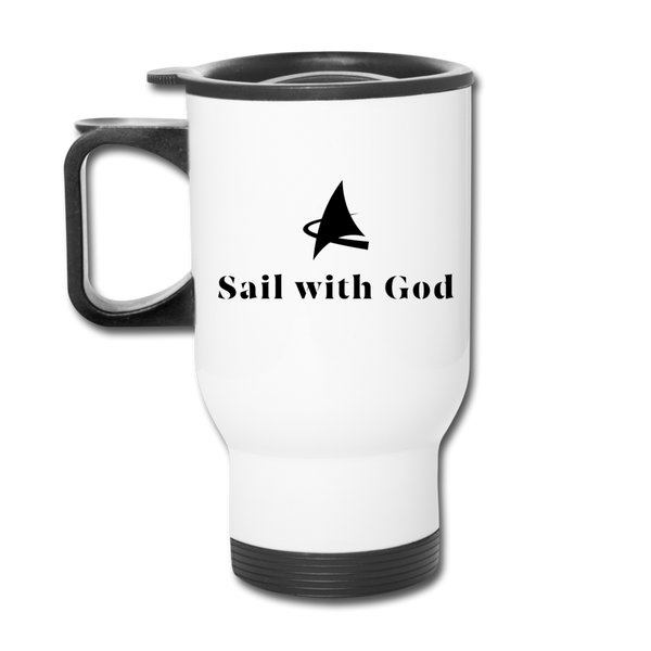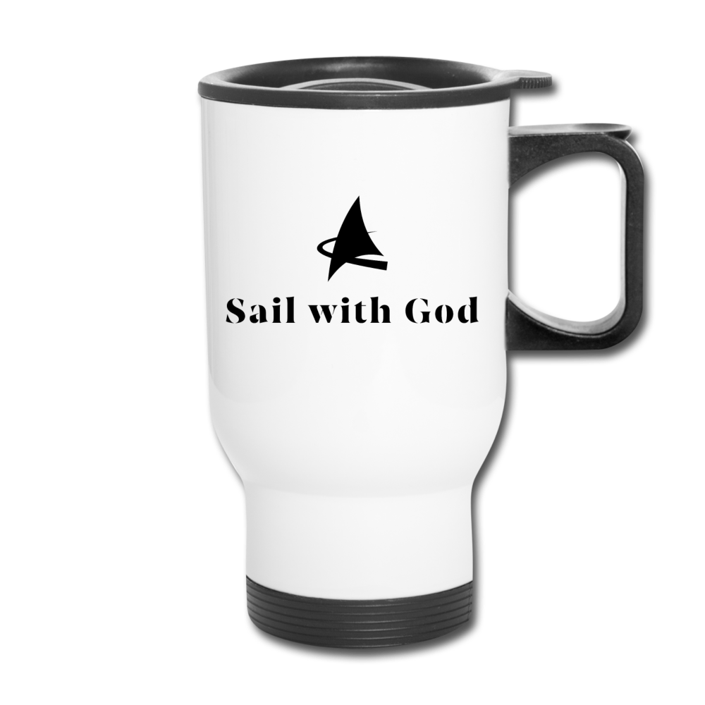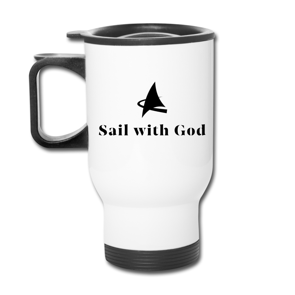 "Sail with God" Travel Mug - white