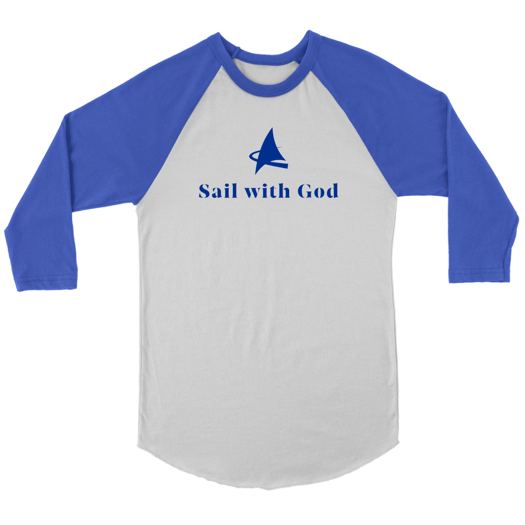 "Sail with God" 3/4 Sleeve Raglan (White/Royal Blue)