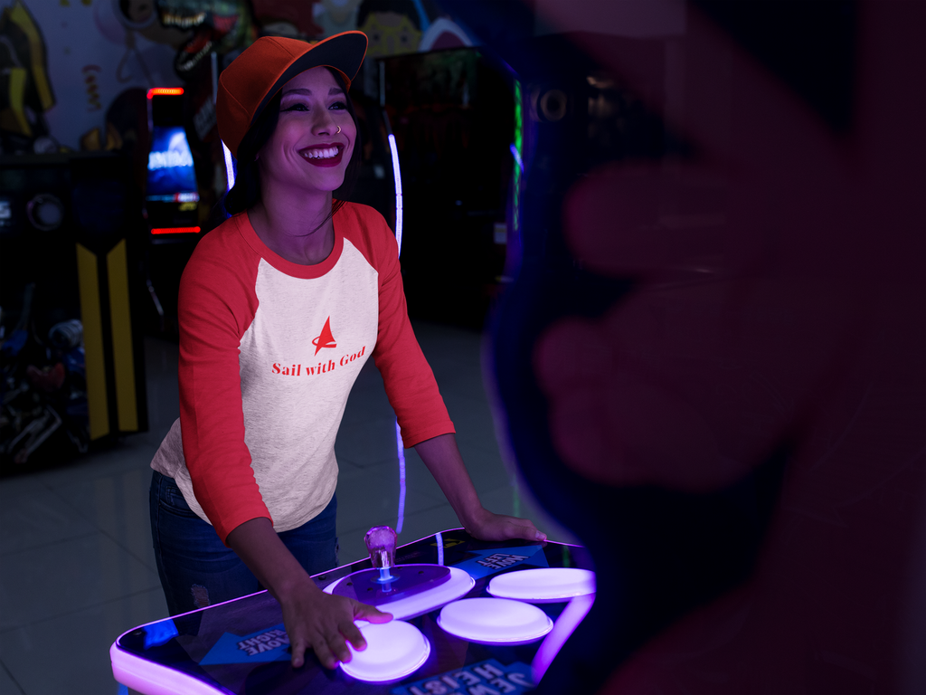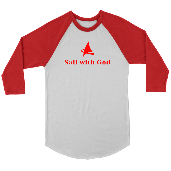 "Sail with God" 3/4 Sleeve Raglan (White/Red)