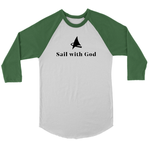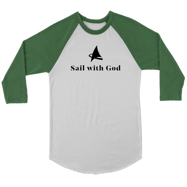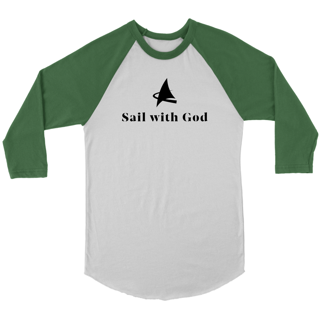 "Sail with God" 3/4 Sleeve Raglan (White/Evergreen)